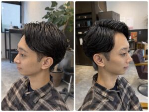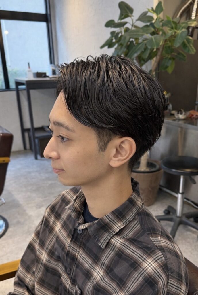 トップは短くしすぎず程よく長さを残しているので、乾かすだけで自然な立ち上がりができてくれます。